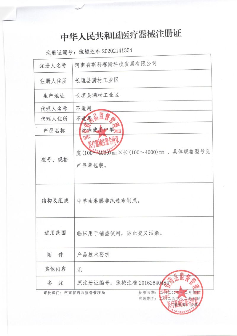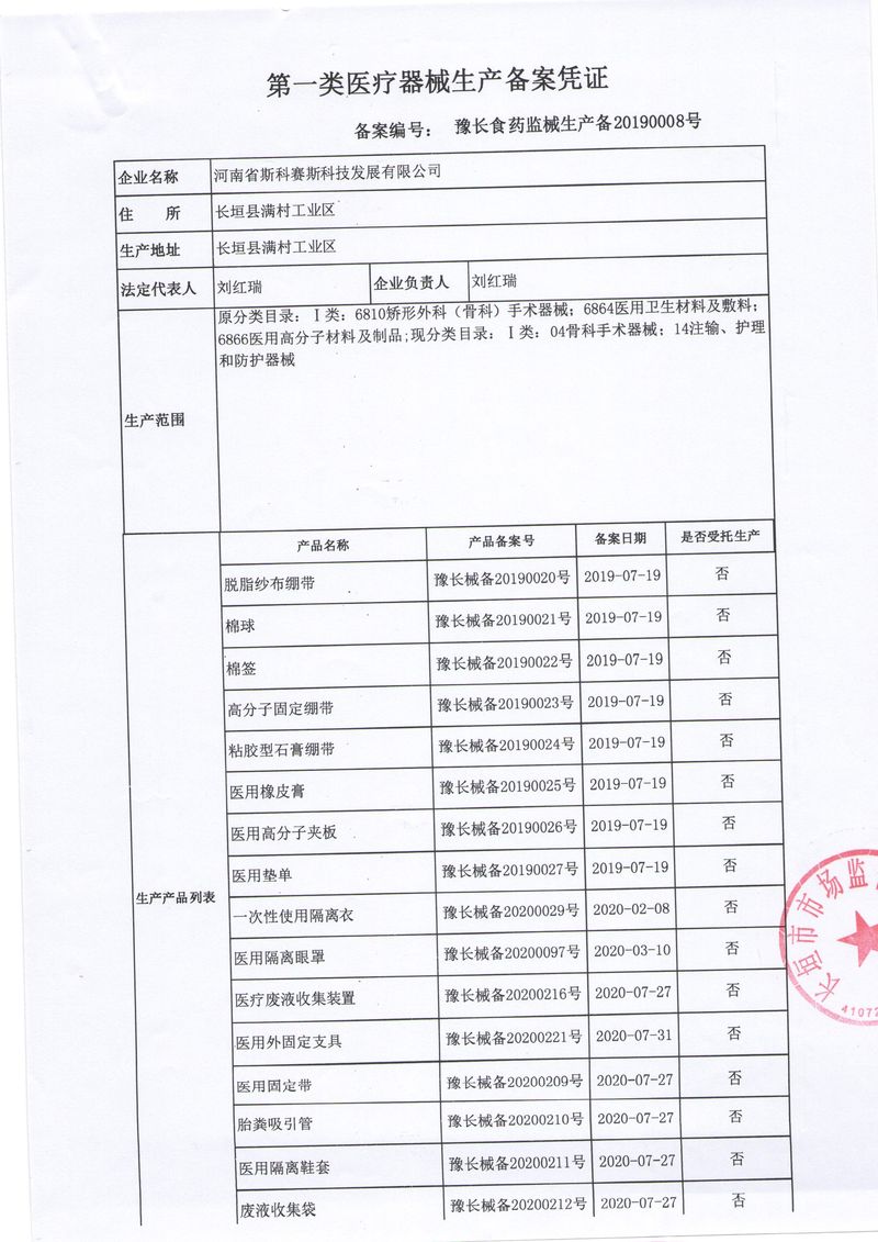 河南省斯科賽斯科技發(fā)展有限公司創(chuàng)建于 2011 年,位于“中國醫(yī)療耗材之都”- 河南省長垣縣,西臨 308 省道,南靠新菏鐵路,北依長濟(jì)高速,交通便捷,經(jīng)濟(jì)發(fā)達(dá),環(huán)境優(yōu)美。斯科賽斯積極進(jìn)入醫(yī)療健康和服務(wù)領(lǐng)域,秉承為用戶創(chuàng)造價值的理念,專注于醫(yī)用耗材解決方案的研發(fā)和運營,并為用戶提供完善的產(chǎn)品解決方案;  斯科賽斯主要生產(chǎn)醫(yī)用麻醉系列、醫(yī)用高分子系列、醫(yī)用敷料包系列、醫(yī)用無紡布系列、醫(yī)用防護(hù)系列、醫(yī)用脫脂棉系列、生物材料制品類等七大類、100 多個品種、400 多個規(guī)格的產(chǎn)品。公司占地面積約 30000 平方米,建筑面積20000 平方米,擁有 10 萬級的凈化車間總面積 10000 平方米。擁有國際先進(jìn)水平的生產(chǎn)設(shè)備和檢測儀器,技術(shù)裝備精良,檢測手段完善,為醫(yī)療行業(yè)的不斷發(fā)展進(jìn)步提供保障。公司順利通過 ISO9001、ISO13485 質(zhì)量管理體系認(rèn)證。  斯科賽斯堅持研發(fā)高科技新產(chǎn)品,力爭在醫(yī)療器械關(guān)鍵領(lǐng)域取得技術(shù)和研發(fā)的重大突破;立足國內(nèi)和國際兩個市場,逐步實現(xiàn)管理理念、經(jīng)營機(jī)制、人力資源、技術(shù)、產(chǎn)品、市場等全方位對接,提高企業(yè)的核心競爭力;過去的歲月里,斯科賽斯砥礪前行,誠信務(wù)實,銳意進(jìn)取,不斷創(chuàng)新,用自己的睿智和辛勞,以富有責(zé)任感的使命,在探索中追求,在追求中超越,致力于成為值得信賴的醫(yī)療用品生產(chǎn)企業(yè)!在未來的日子里,斯科賽斯將一如既往豪情滿懷,信心百倍,攜手并肩,執(zhí)著追求,向更高的的目標(biāo)前進(jìn),鑄造新的輝煌!